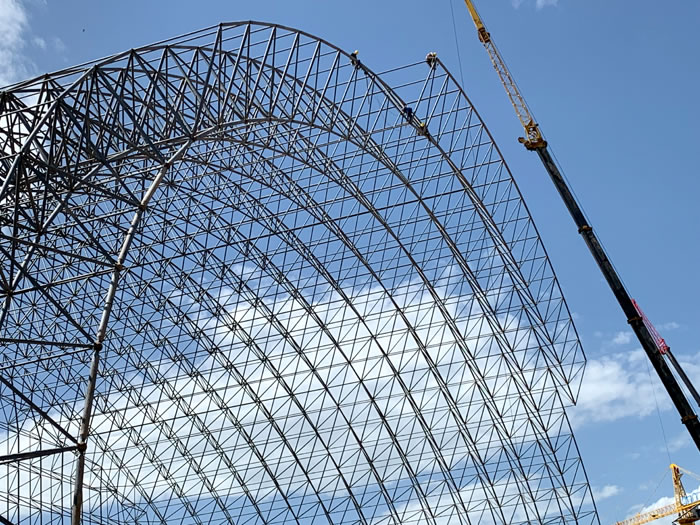 (2)网架加工前应对现场尺寸进行复测,确认无误后方可进行加工、安装;网架制作、运输、安装应遵守《空间网格结构技术规程》JGJ7-2010、《钢网架桦甸螺栓球节点》JG/T 10-2009、《钢网架桦甸螺栓球节点用高强度螺栓》 GB/T 16939-2016、《桦甸钢结构桦甸工程桦甸施工规范》 GB50755-2012、《桦甸钢结构桦甸工程桦甸施工质量验收标准》 GB50205-2020。